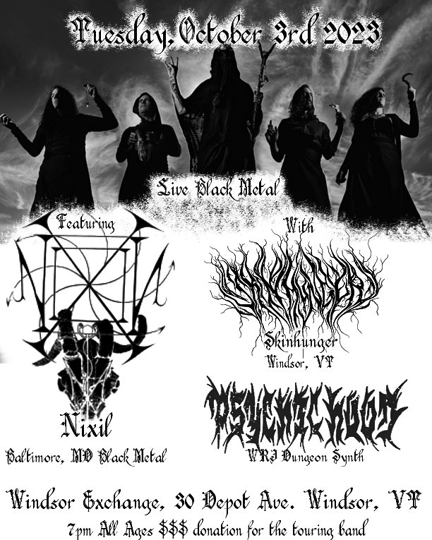 Tuesday, October 3rd 2023 at the Windsor Exchange in Windsor, VT with Nixil and Psychic Hood