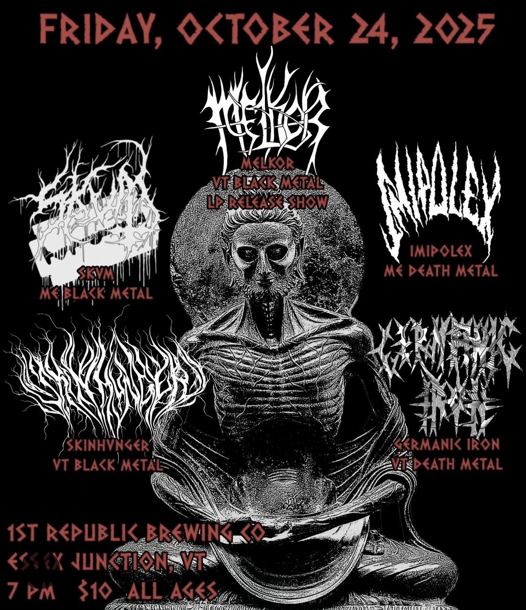 Friday, October 24th at 1st Republic Brewing in Burlington, VT for Melkor's album release with Imipolex and Germanic Iron