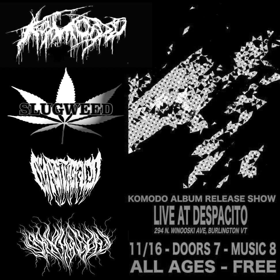 Thursday, November 16th 2023 at Despacitos in Burlington, VT with Chartarum, Slugweed and Komodo