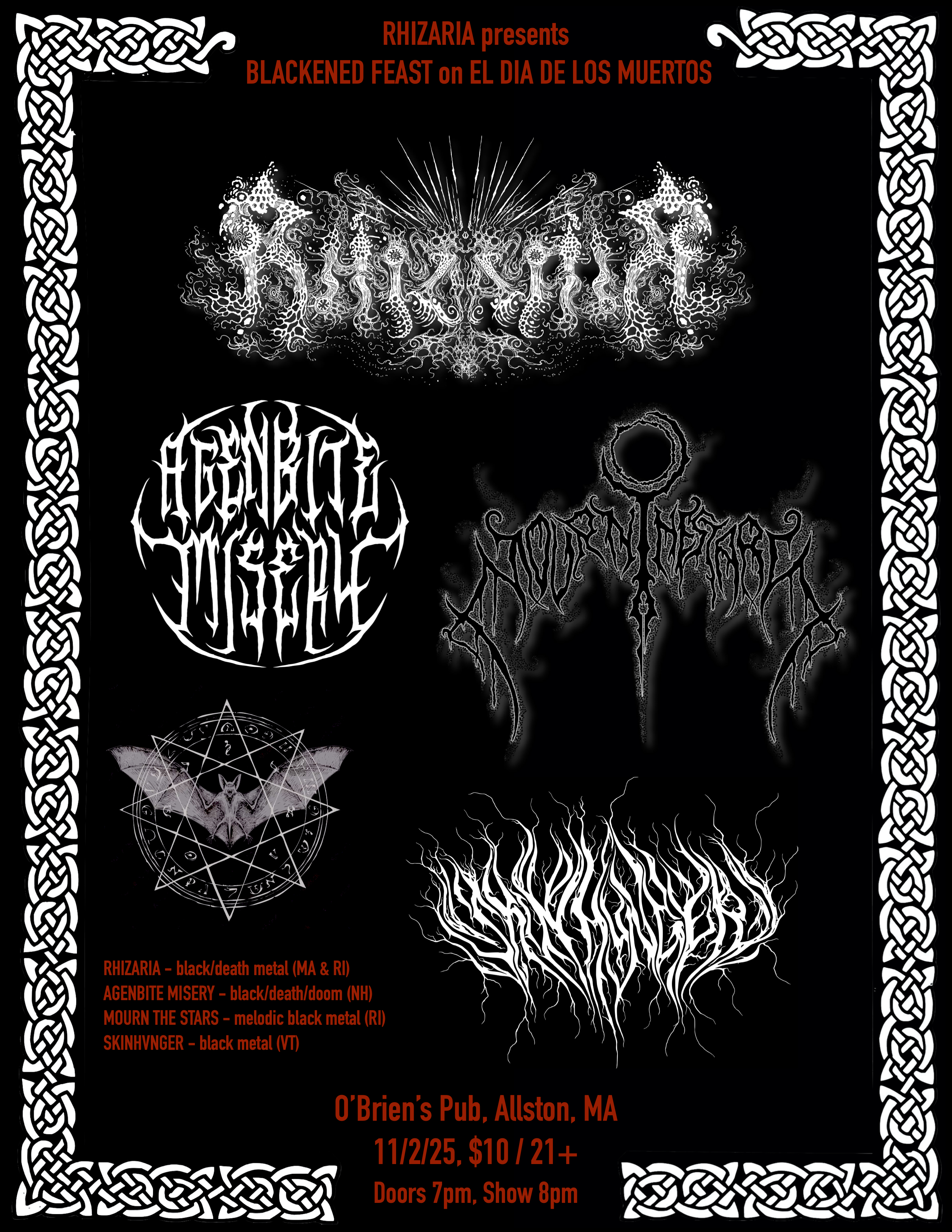 Sunday, November 2nd at O'Brien's Pub in Allston, MA with Rhizaria, Mourn The Stars and Agenbite Misery