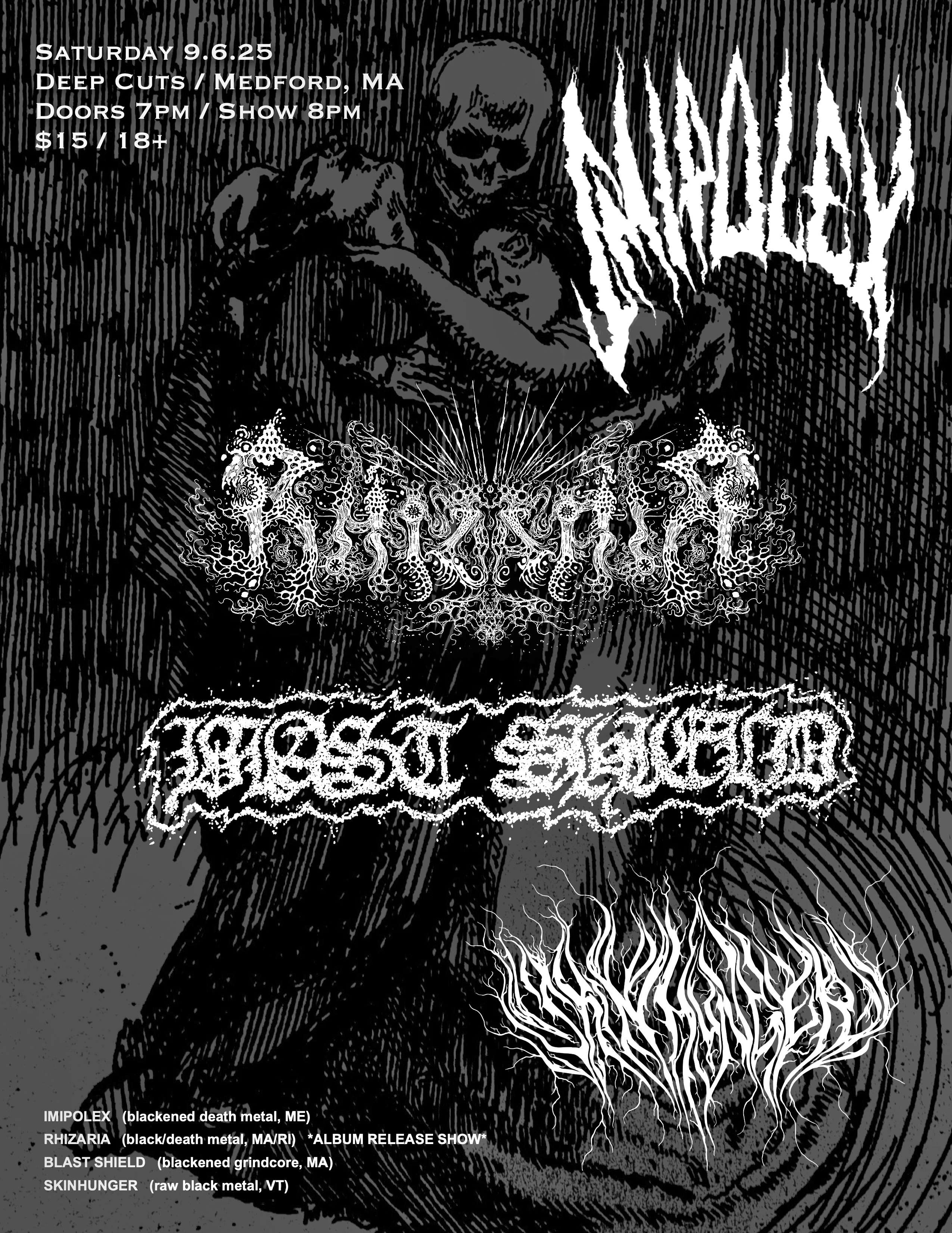 Saturday, September 6th 2025 at Deep Cuts in Medford, MA with Rhizaria, Imipolex and Blast Shield
